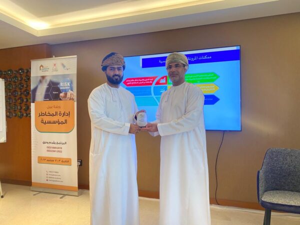 شاركت خلال الفترة من 3 – 7 سبتمبر 2023م في ورشة إدارة المخاطر المؤسسية والتي نظمتها وزارة العمل وتقديم الأستاذ ناصر اليعربي، تضمنت الورشة